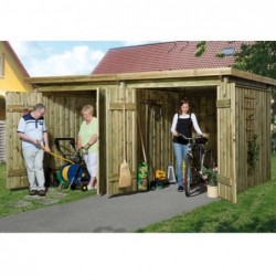La resserre WEKA - Avec la resserre de WEKA, vous avez la possibilité de choisir où installer la porte : sur la paroi avant, arrière ou latérale. Vous êtes, par ailleurs, libre de poser une porte simple (largeur 77,5 cm) ou une porte à double battant (largeur 159 cm). Cette construction a la particularité de garantir une aération optimale à l'intérieur de la resserre.
