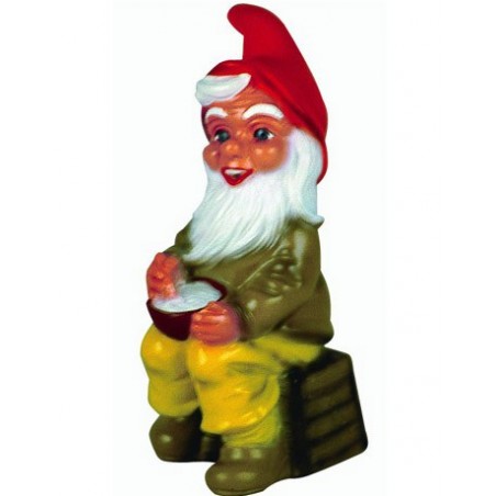 Ce nain de jardin est-il cuisinier ? Non ce n'est pas tout à fait son cas, ce petit bonhomme prépare une bouillie très spéciale. Lui seul connaît la recette, la légende dit que dans ce plat se cacherait une potion magique qui ferait grandir les nains... Vous y croyez ?